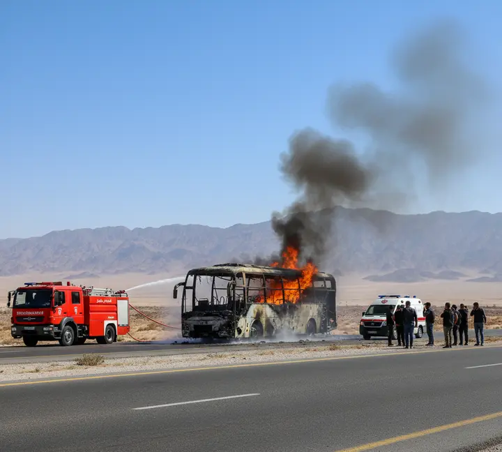 العناية الإلهية تتدخل لإنقاذ عشرات الركاب بعد تفحم أتوبيس رحلات بالكامل على طريق طور سيناء - شرم الشيخ. تعرف على تفاصيل الحادث المروع وكيف نجا الركاب من الموت.